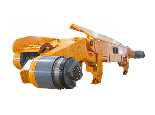 結(jié)構(gòu)優(yōu)勢(shì)截割部為分體直搖臂型式,搖臂部分可實(shí)現(xiàn)左、右互換;截割部與牽引部采用圓錐柱銷連接,安裝拆卸方便;搖臂殼體帶有冷卻水套,內(nèi)部裝有強(qiáng)迫潤(rùn)滑和冷卻裝置。